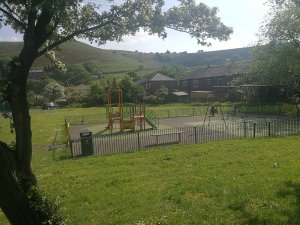 The trail continues onto Hill End Road and Denshaw Road, passing the White Lion, another pub. As it was a beautiful day their beer garden was really busy, this would also be a great place to stop for a drink or some food. As we walked down the road, we saw a fab little playgroup close to Delph primary school.