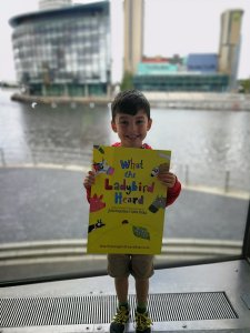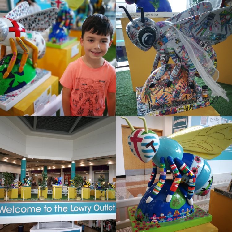 You may have read my recent post about the giant Bee sculptures that are buzzing around Manchester over the summer? Well we decided to have another day of bee hunting. We were at The Lowry theatre in the morning to see What The Lady Bird Heard, which was a fantastic show, the kids loved it. Joshua checked his map and we soon realised there was plenty of bees to be found around that area!