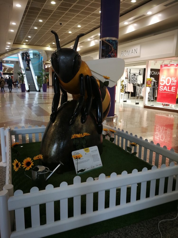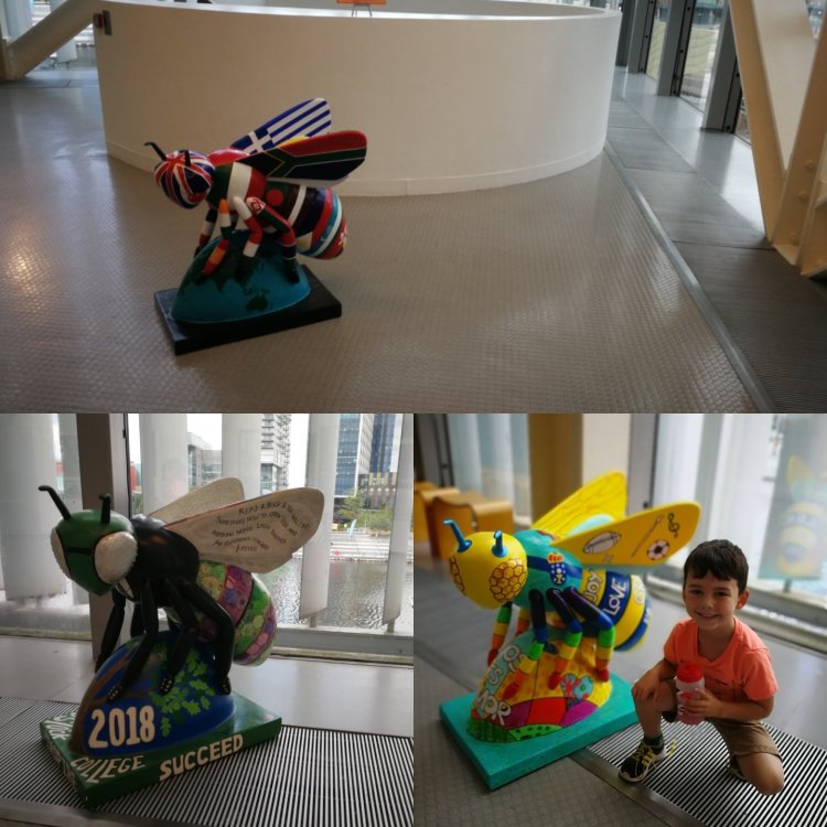 On the upper floor of the outlet mall we found 18 Little Bees to the delight of my children! They looked great all clustered together, so bright and colourful! It was lovely to watch families come to take photographs and even see children get excited when they saw the Bees on display that their school had helped design.