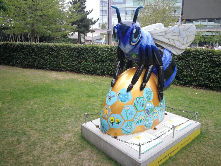 We found Blue Bee-ter close to the Blue Peter gardens in Media City UK. This bee was designed by Jodie Silverman and is in fact inspired by a blue bee found in Southeast Asia, India and China.