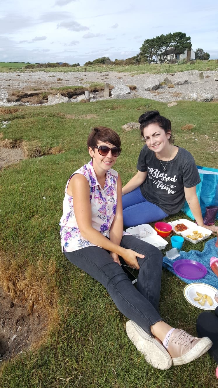 Whilst Lauren packed a bag of plastic plates, blankets, drinks, pizza and yogurts, I headed to the local chippy for a couple of portions of chips. The very tired 9 of us walked through the caravan site to the sea front for a special picnic tea which was lovely.