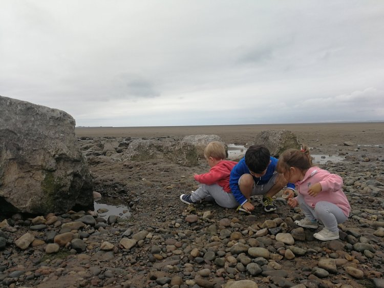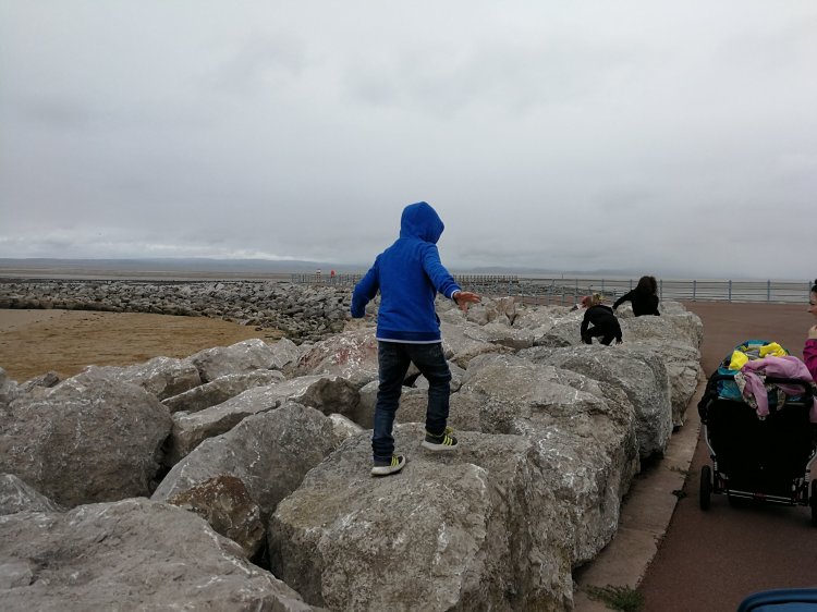 It unfortunately started to rain, I still believed it was going to brighten up soon, so we packed up and headed back along the sea front. The older ones enjoyed the shadows again and even walking along the rocks, they were just happy to be out and about.