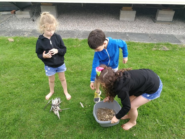 Tuesday morning started pretty much the same as the day before. Up early and quickly feeding 7 hungry children. Whilst we got ready again, we let the kids sit on the decking and colour in some more shells and rocks which worked well and kept them happy. We packed another picnic and we were soon off for another day full of adventures.