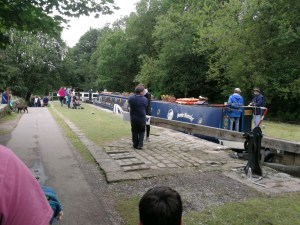 Once we had finished, we made our way back into Uppermill Village by walking along the canal path. The kids loved to watch the barge passing through the lock. We waited to see if the Lancaster Bomber plane would fly over as it was expected, but unfortunately due to low cloud it was cancelled.