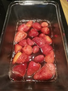 I rushed to the freezer and found some frozen strawberries from Aldi. I told him we could make a strawberry crumble too and he was pretty happy!