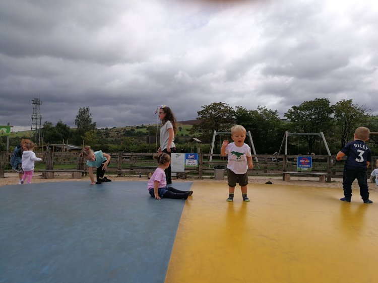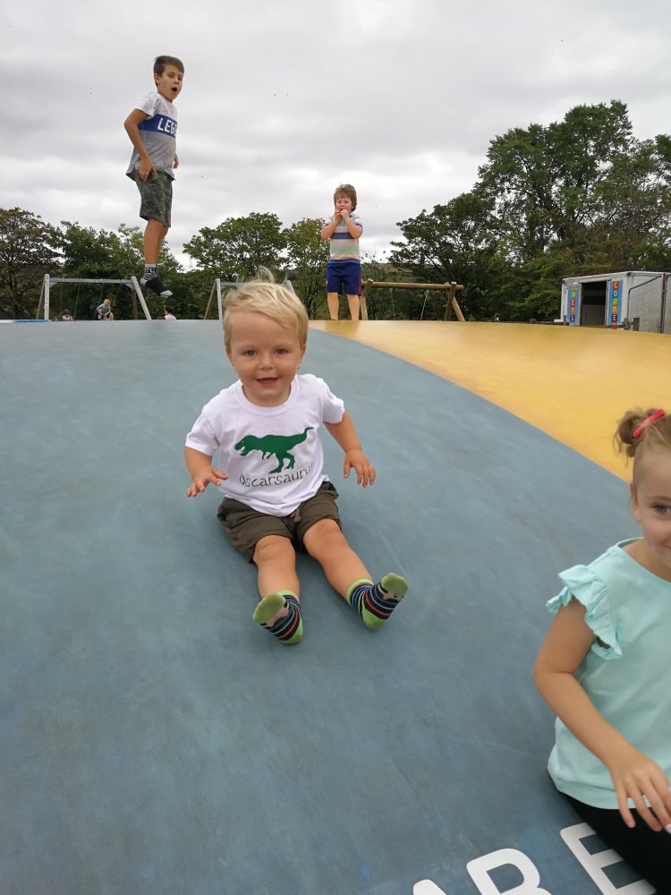 We caught up with everyone else (my two wanted to wash Percy for a long time) and decided whilst it was dry we should let the kids run around outside. We made our way over to the giant bouncy pillow!