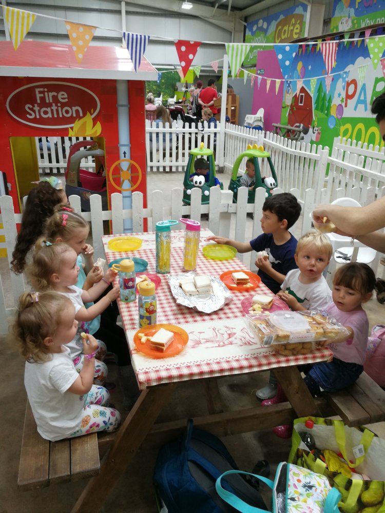 Back inside we a picnic bench for all the kids and set up camp! To save money, we tend to always bring food with us wherever we go. We decided on a picnic today for ease as between us there was 8 children ranging between 6 months old and 9 years old.