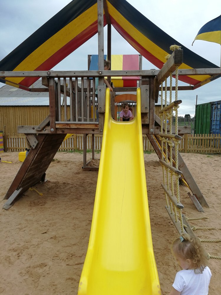 There’s a large ‘beach’ area full of buckets and spades and a giant climbing frame with slides.