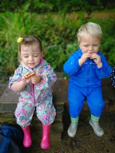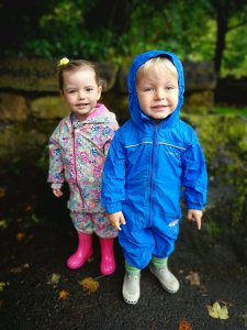 Oscar and Isla wore their wellies and their puddle suits. The weather as we arrived wasn’t great, I actually thought it may have been cancelled but Ellie’s message said whatever the weather the sessions run.