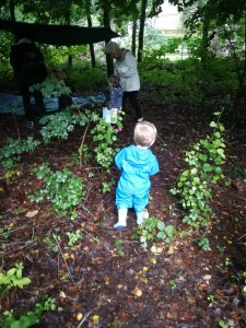 As we arrived at Brownhill Nature Garden, (which is lovely by the way) we noticed caught up with Ellie and other little ones in the shelter they had made underneath the trees. Everyone was very friendly and we sat down to introduce ourselves. Oscar and Isla were a little wary to start with but they soon came around. Luckily it stopped raining and we were able to head out of the shelter too.