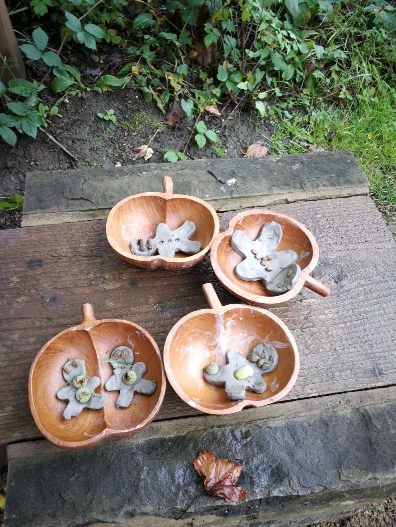 Next we headed out to find things to decorate our clay gingerbread men with. Oscar and Isla used little stones for the eyes and we found seeds and acorn shells for buttons. They had so much fun doing this and they were so impressed with what they made.