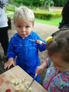 After the gingerbread men, Ellie said the children were going to cut their own fruit and make some fruit kebabs! My two have never used a knife before but they loved having a go, understanding they had to be sensible. The both enjoyed their fruit kebab, my two love fruit anyway but it was such a fun way to eat it, Oscar went back for seconds!