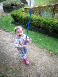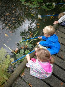 After our snacks, each child was given a fishing net and we headed to the pond. Ellie explained to the children that they needed to slowly place their net into the pond so not to scare off any of the creatures that live their.