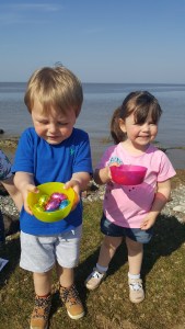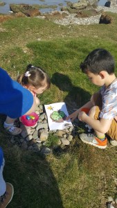 I placed some chocolate eggs with the puzzle pieces and a clue cards and put them into their hiding places and waited for Daddy and the kids to join me on the beach.