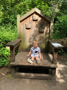 Speke Hall is perfect for families! The trail took us through the ‘Childe Of Hale Trail’, a permanent trail in the trees. Here we hear the story of the giant that lives in the woods, we search for his missing buttons and bows, we tiptoe past his house not to wake him and we take a seat in his giant chair!