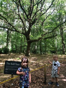 We spot more faces in the trees as we walk through the woods, passing the gorgeous Bell Tree. The path soon leads us out of the woods and back unto the path towards the Hall.