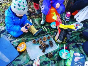 We made some really easy feeders at forest school recently by threading cereal hoops onto pipe cleaners, which is also a great way to improve a childs fine motor skills. There are lots of easy ways to make bird feers.We like to use pine cones, it can be a little messy nut my little ones love it!
