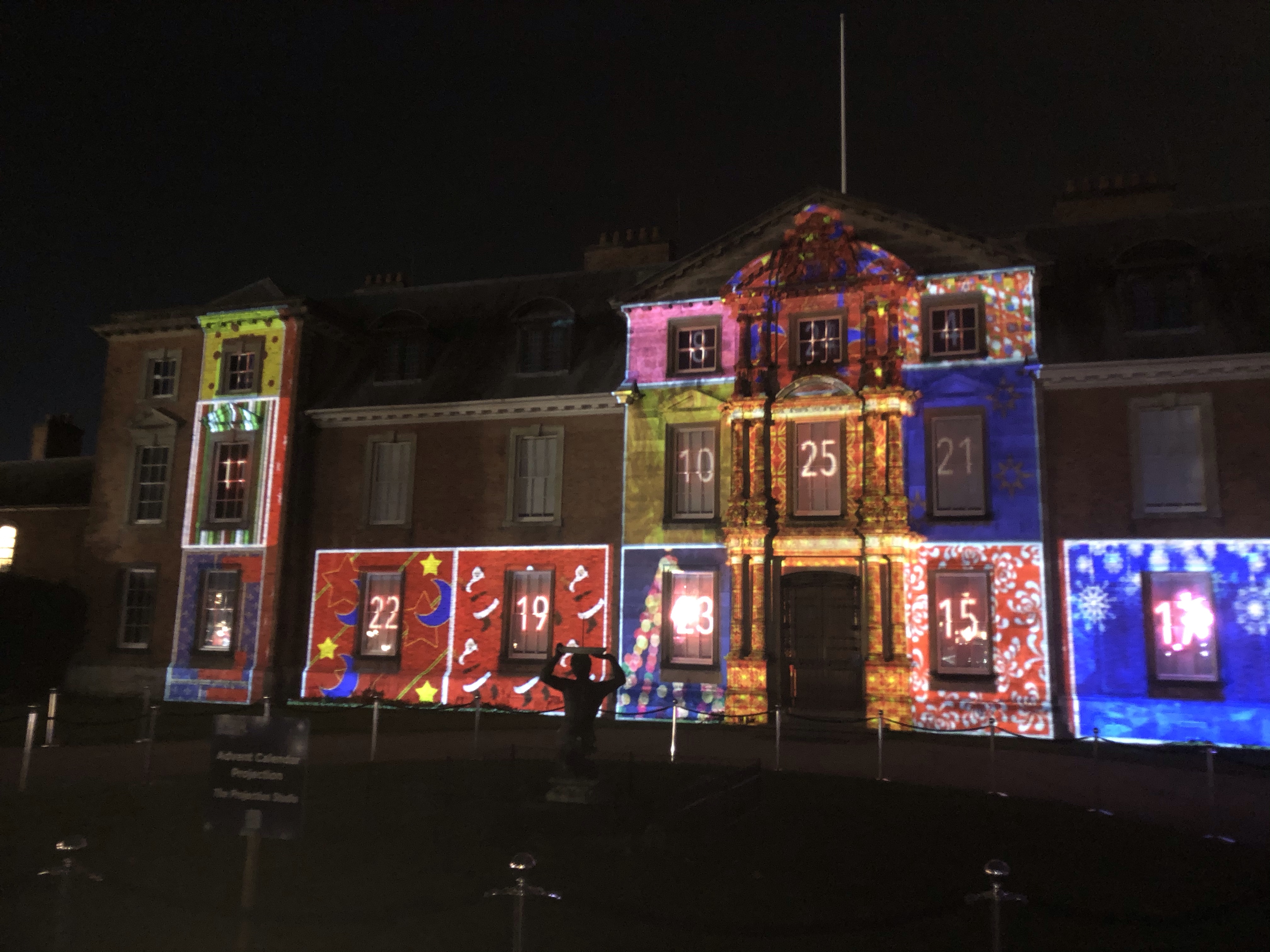 Every year we expect bigger and better and that’s certainly what we got. This year the route started a little differently, talking us along the deer park and starting us right in front of the house. The house was illuminated and looked fantastic with Advent Calendar projections.