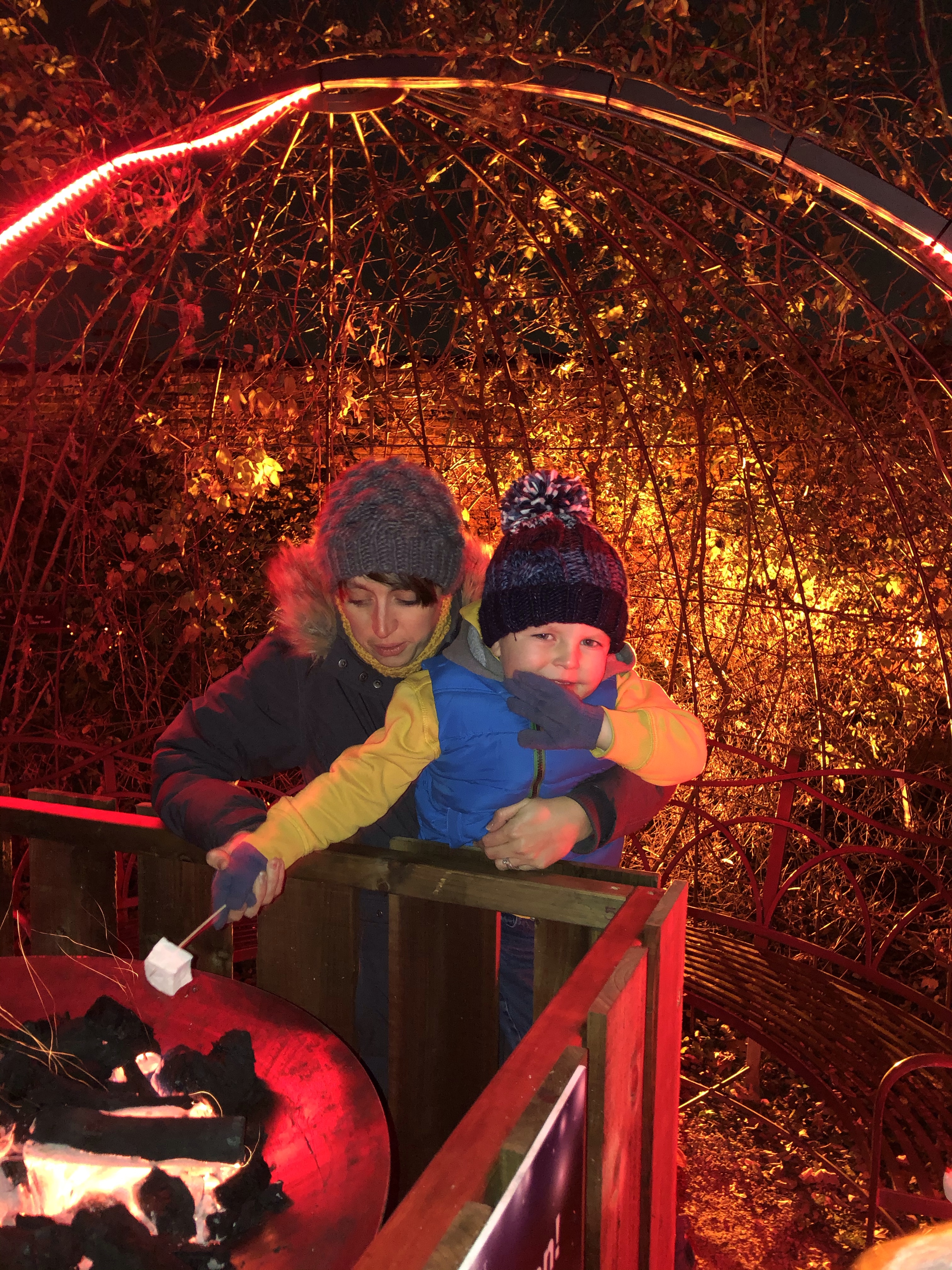 Next we headed through beautiful tunnels of light to toast some delicious marshmallows! The kids picked vanilla flavoured marshmallows, whilst I went for chocolate orange and my husband chose salted caramel. Is there anything better than Christmas lights and hot toasted marshmallows?