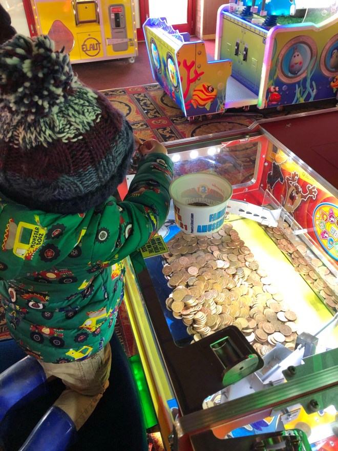 At the piers entrance we had a go on the 2p slot machines in Silcocks Funland, a favourite thing to do when visiting the seaside! After losing all out 2p’s, we headed to the traditional fish and chip shop. To keep costs down, we had brought a picnic including a flask of tea. We picked up two portions of chips and headed towards the park. We sat at a bench and enjoyed a feast of sandwiches and chippy chips! Delicious.