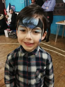 My eldest went first and expected to see a list of ‘things he could have painted’, but Carly told him he could have absolutely anything. He went for Batman (which I thought was pretty boring), Carly said she does an awesome Batman and yes, she does! It was a very impressive Batman, complete with the Gotham City skyline!