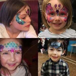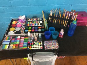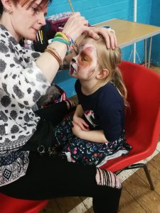 As part of my tailor made package, we had face painting for the children. Carly was also our face painter, she set up her table with a very impressive display of professional brushes and paints and the children started to line up. Oh wow, I have never seen face painting like this before!