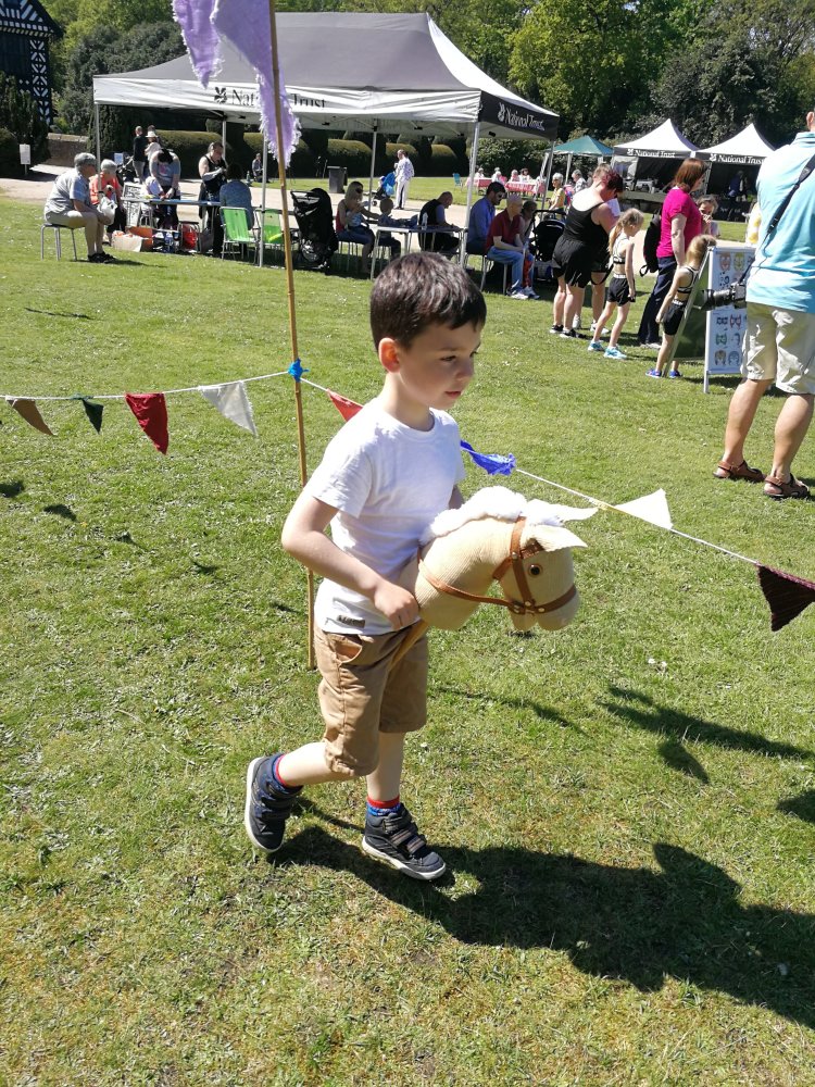 Before we left we went to check out the May Day activities that were on this weekend at Speke Hall. There was different Tudor market stalls selling a mixture of food, drink and jewelry. There was lots of people in tradition medieval costume, Tudor dancing, Morris dancers and even performances re-enacting historic battles. My children enjoyed the jousting! They each grabbed a hobby horse and galloped up and down the lawn. There were ‘jousting poles’ in the form of swimming woggles and even coconut shells to make the noise of a horse trotting!