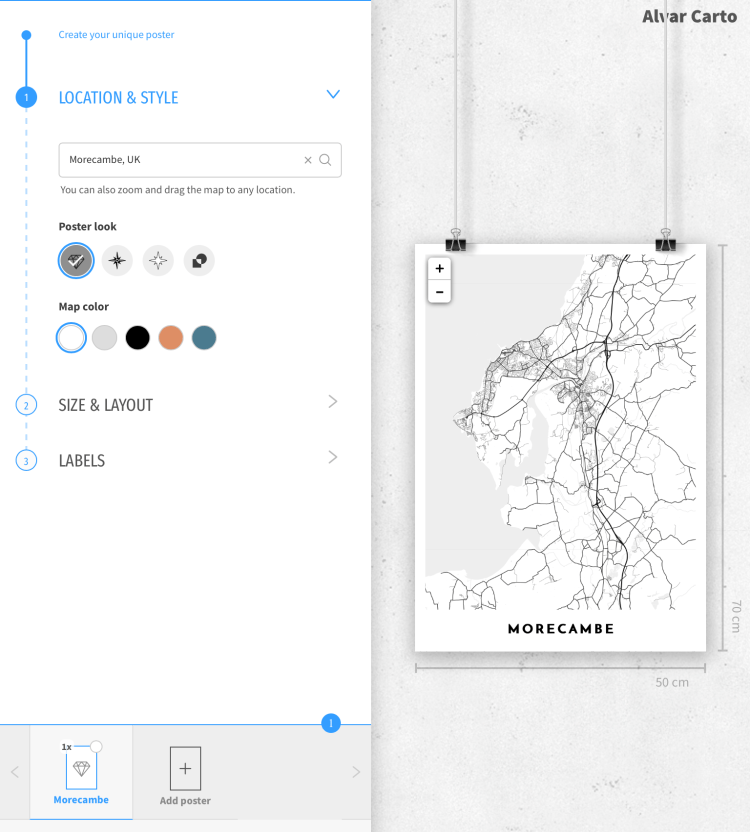 Alvar Carto is a website that allows you to order and create unique custom-made map posters of anywhere in the world, allowing you to hold on to those special moments and remember favourite places.