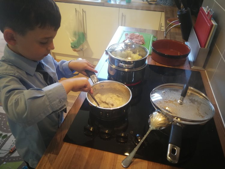 Most of the ingredients I already had in which was fab, I only needed a couple of things from the shop that I picked up earlier in the day. I read through what to do and it seemed nice and simple, a quick dish for an after school healthy meal. Whilst the pasta was cooking and the cauliflower was steaming, Joshua asked to help which I thought was great! He helped to make the cheese sauce.