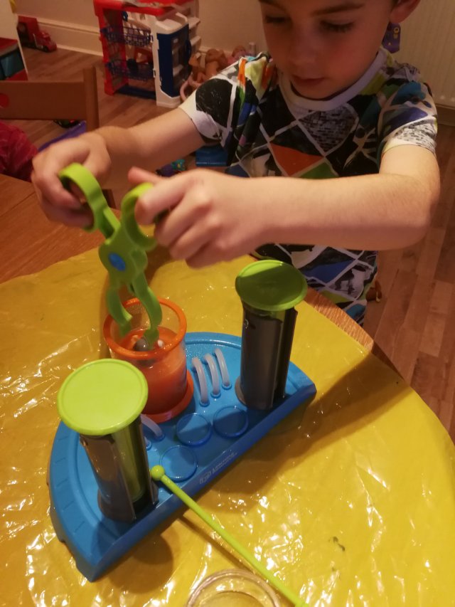 Once we had it all set up we were ready to extract our creature! To find out what creature is inside the colourful reactor pods, we needed to follow the instructions to create a chemical reaction.