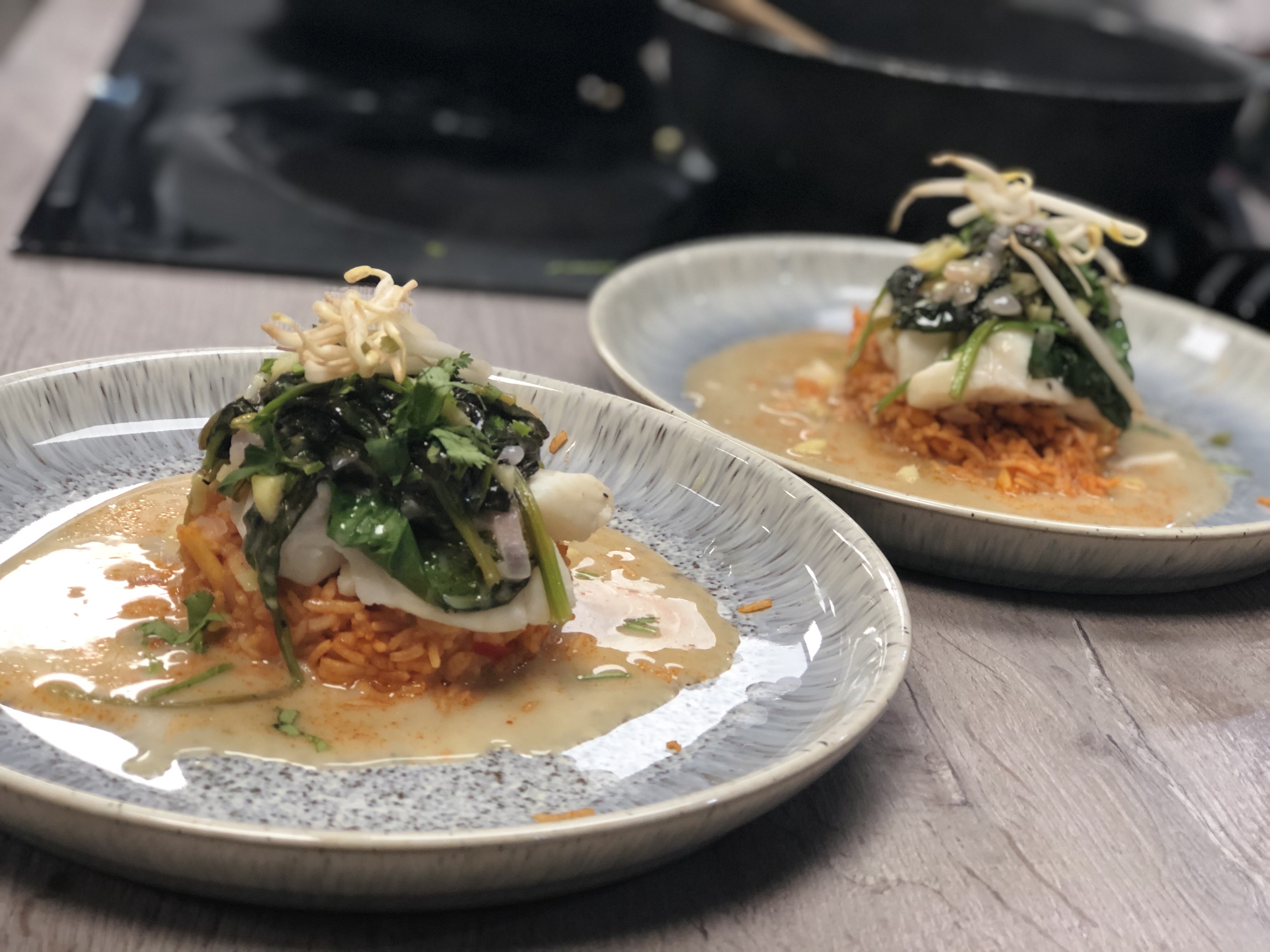 After another demonstration, we were back to cooking again. My ‘can’t cook, won’t cook’ husband was certainly enjoying himself and he couldn’t wait to get stuck in with the main meal- Vietnamese Inspired Lime Caramel Fish with Red Rice.