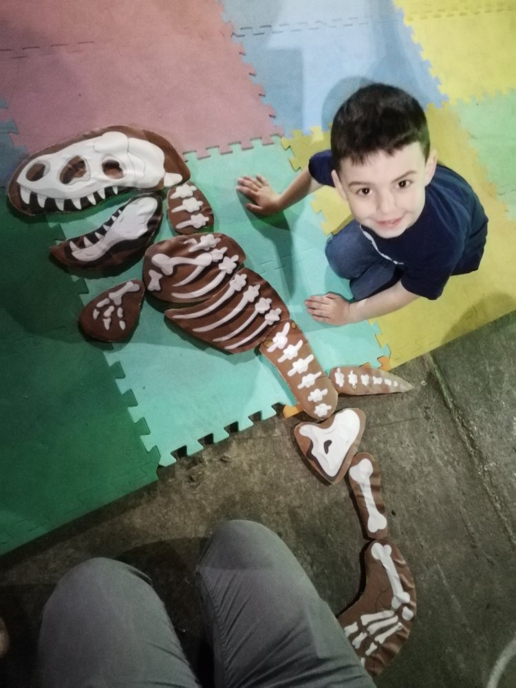 The first challenge was great for any puzzle loving kids. Each child were given a bag of dinosaur fossils that needed putting back together! We worked as a family and managed to make a dinosaur!