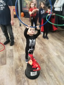 As we arrived we were greeted by Merlin the Wizard! The room looked great, there was plenty of props around the room including a bubbling cauldron and pumpkins! Merlin explained that all the children had come to learn how to be wizards.