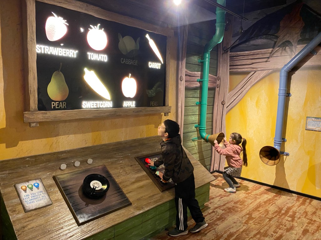 We were greeted by a very friendly member of staff who gave the kids a sticker and activity sheet, where they needed to collect stamps as they move around the attraction. We moved through a series of themed zones, play games, solve challenges and collect their stamps.