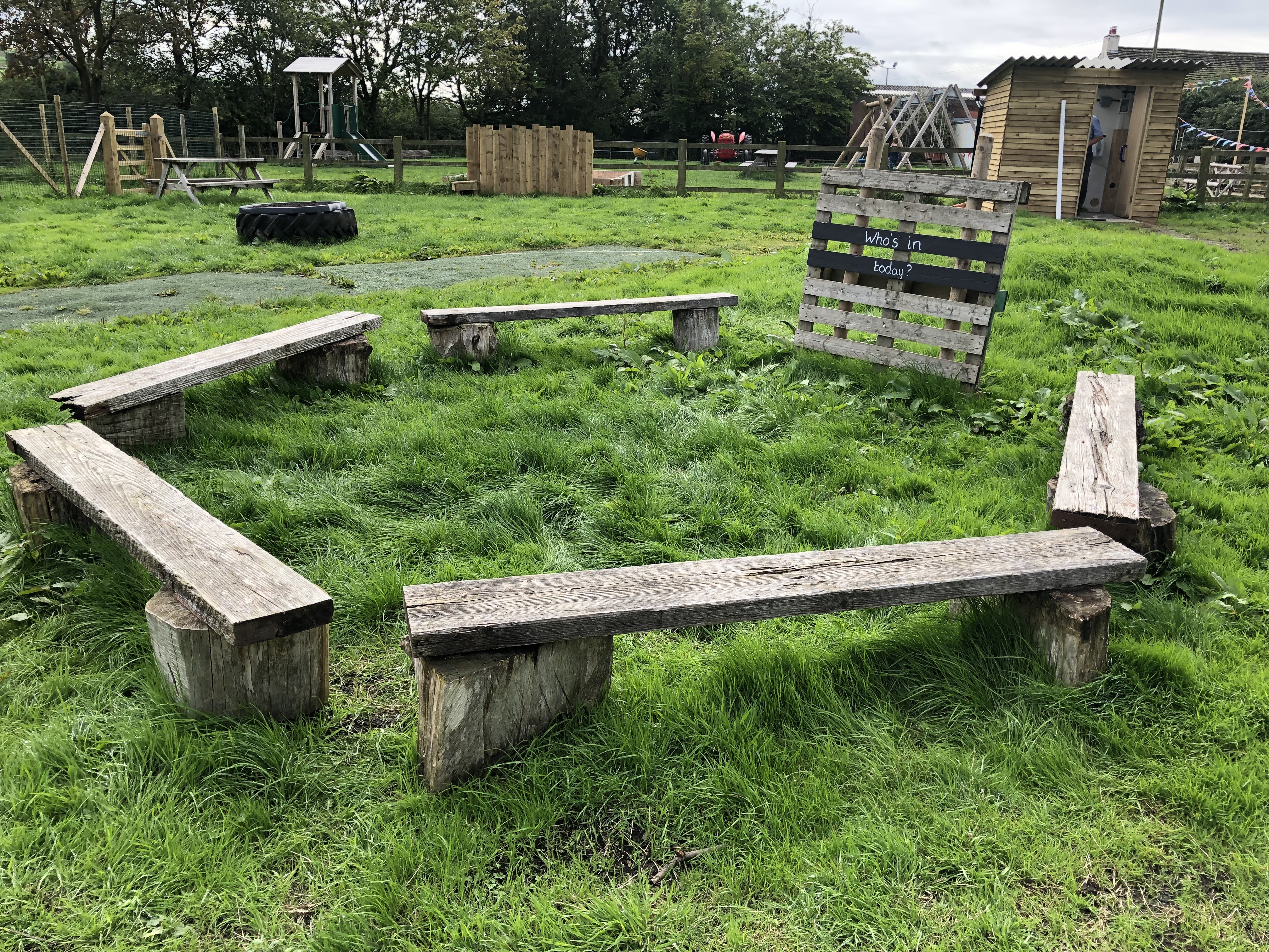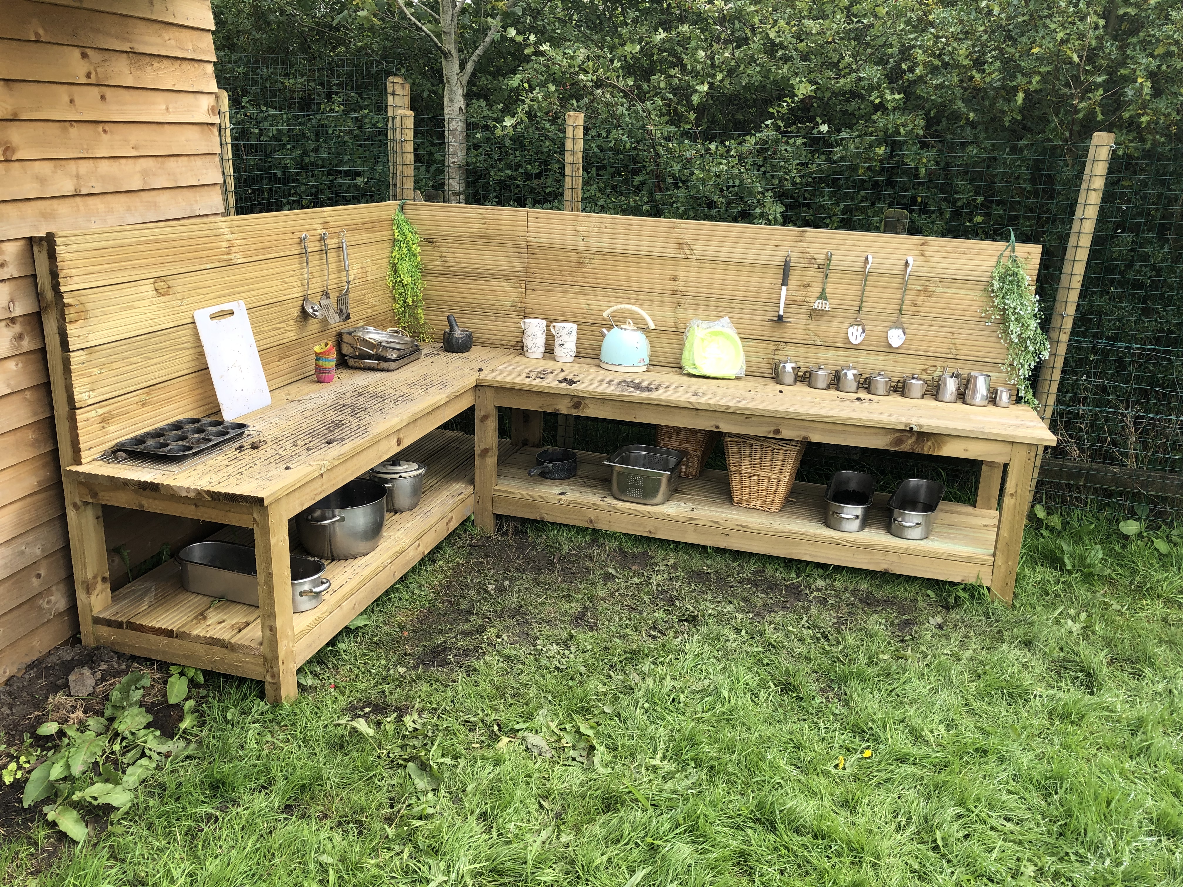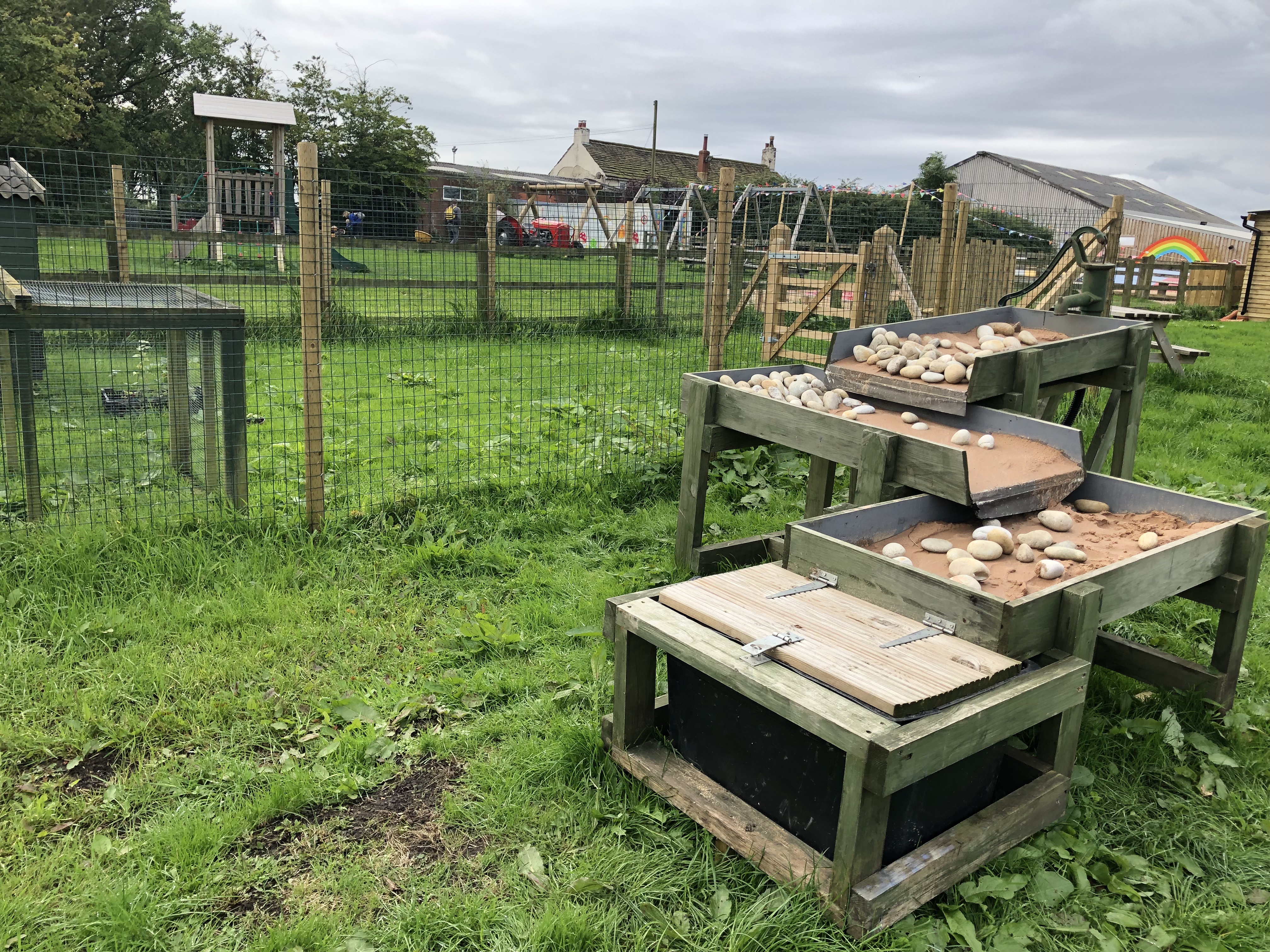 There’s a seating area in the middle of the site, where the children will meet for registration. There’s also a fire pit, sand areas, a large mud kitchen and a very cool water area for role play. There was also a mixture of pots and pans, my two soon started banging and making music immediately!