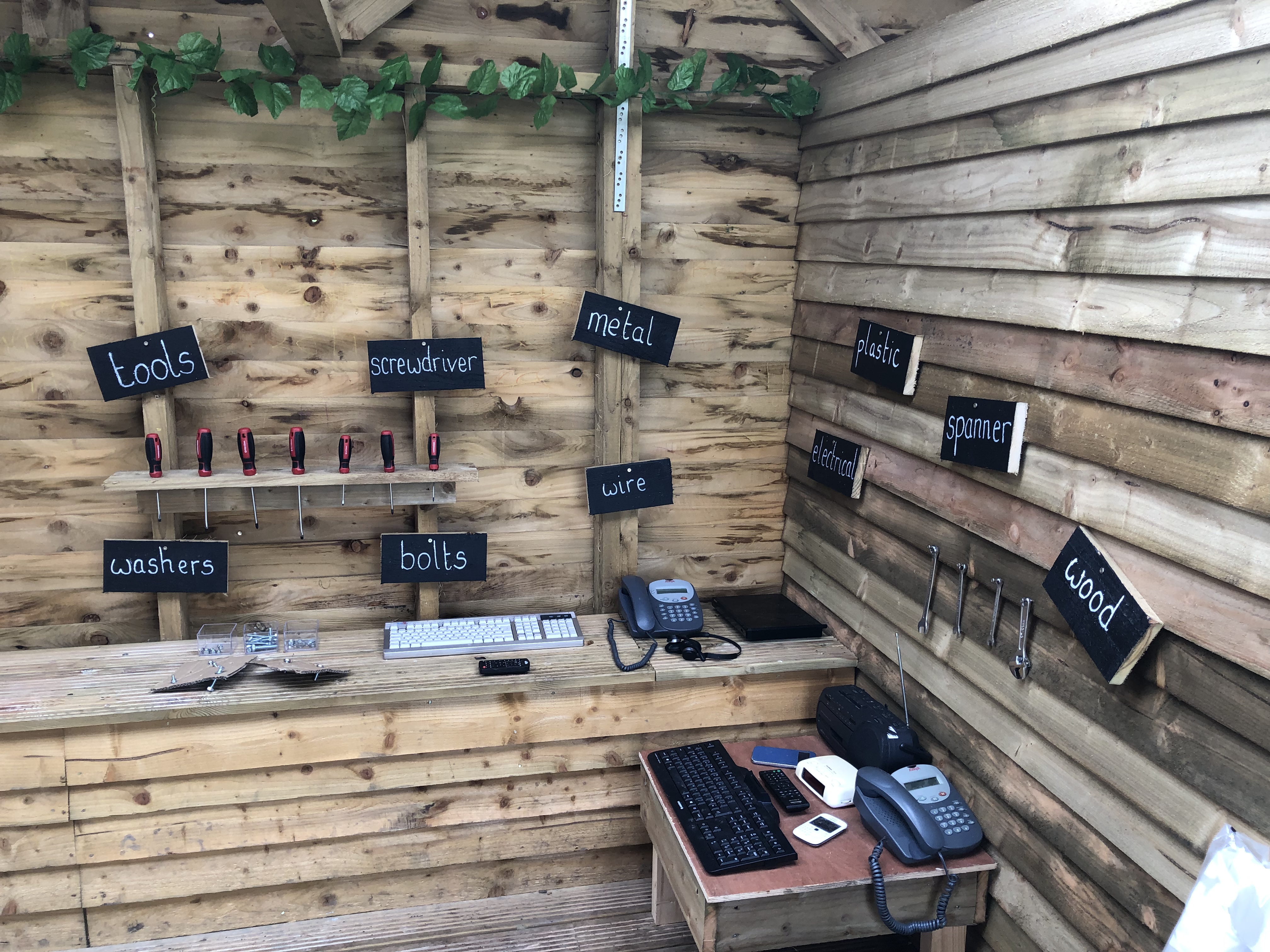 There was also a ‘Tinker Shed’ filled with lots of interesting things, from nuts and bolts to old phones and keyboards. There was also space for art supplies and other learning materials.