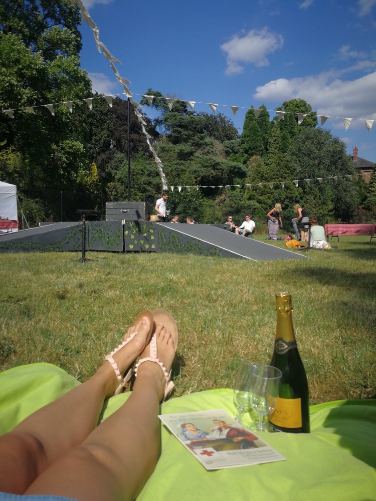 Armed with our picnic blanket, our afternoon tea boxes and even a bottle of fizz, we found a great sunny spot close to the stage. The cast explained how the performance would be performed in the round, so there wasn’t a front or a best spot to sit! This sounded exciting!
