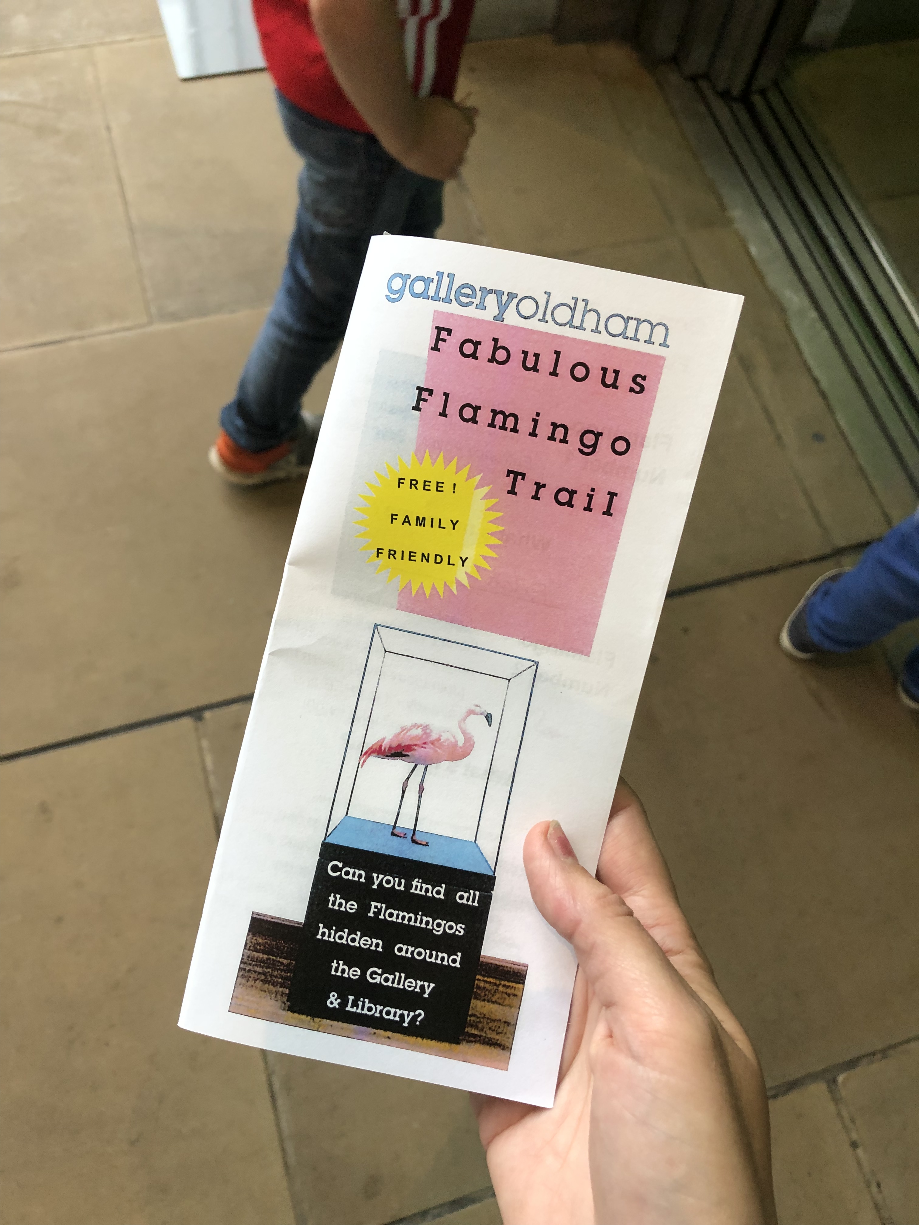 It’s the actually galleries that I always forget about. It wasn’t until our recent trip to the library for a half term session, that I spotted a sign about a flamingo trail around the galleries. A trail? Well you all must know how much my children (and I) LOVE a trail! We were there!