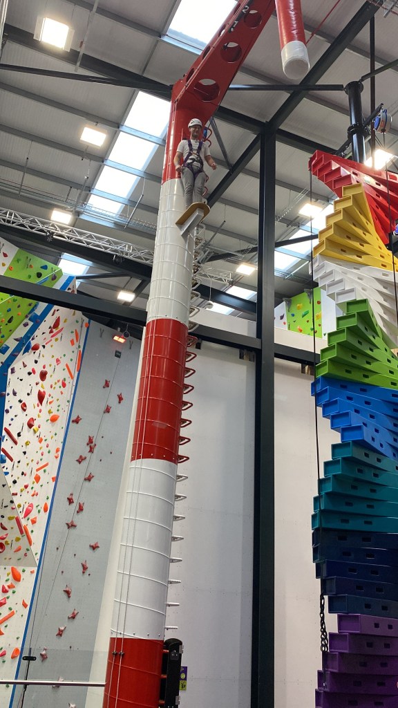 After letting the kids have a few goes, I thought I’d give it a go. I have no problems with height and could happily climbing to the top. It’s letting go to come back down that took me a while to do. Once I got over the initial fear, I had lots of fun!
