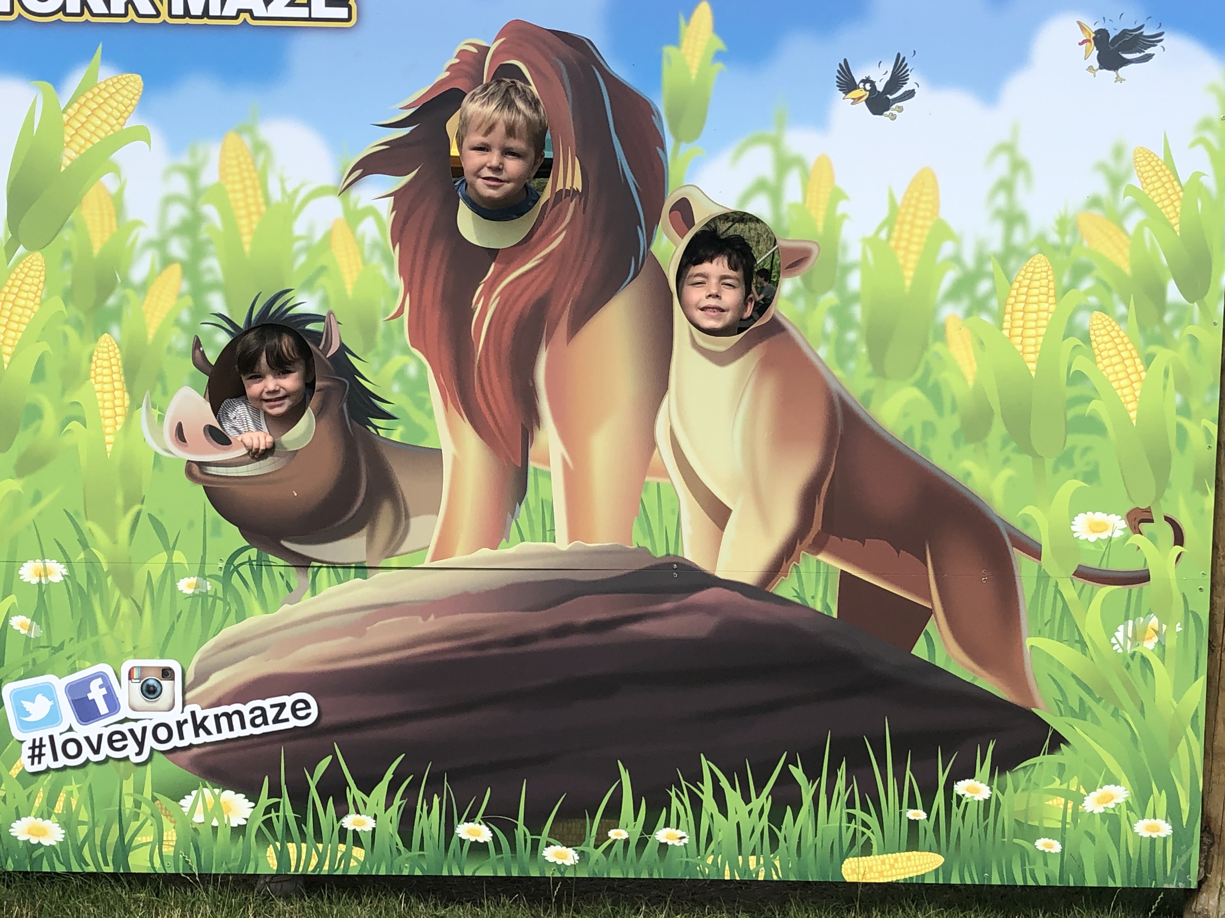 I had read all about the giant maize maze and I knew it was big, (the biggest in Europe) but WOW we were surprised! The maize must have been over 10ft tall, there’s no way we were looking over that! We had to get from the start (tower 1) to the end (tower 6) stopping at each tower in between, answering questions all about The Lion King. Every year sees a new theme for the maze, which are all on display.