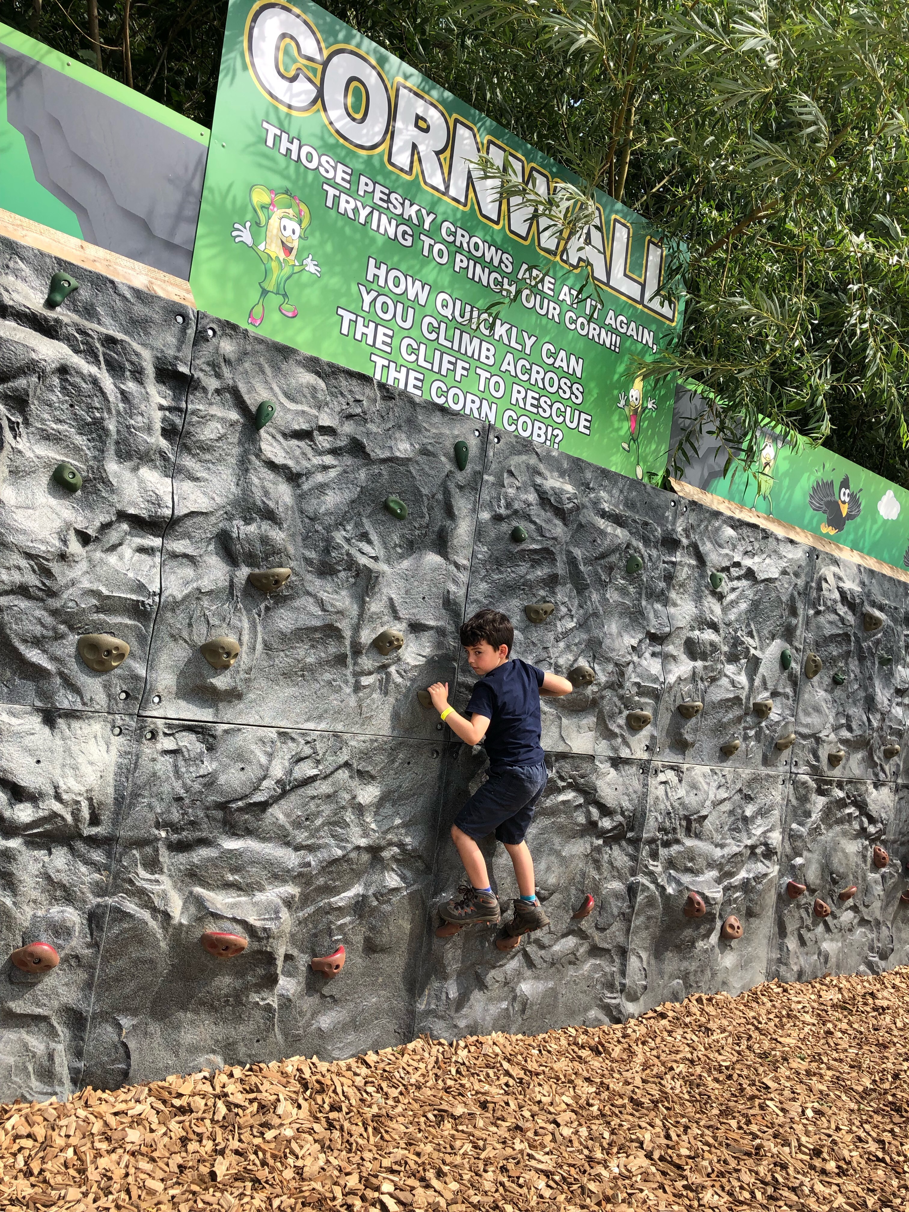 Cornwall – a mini climbing wall for the kids, Joshua loved trying to get from one side of the climbing wall to the other.