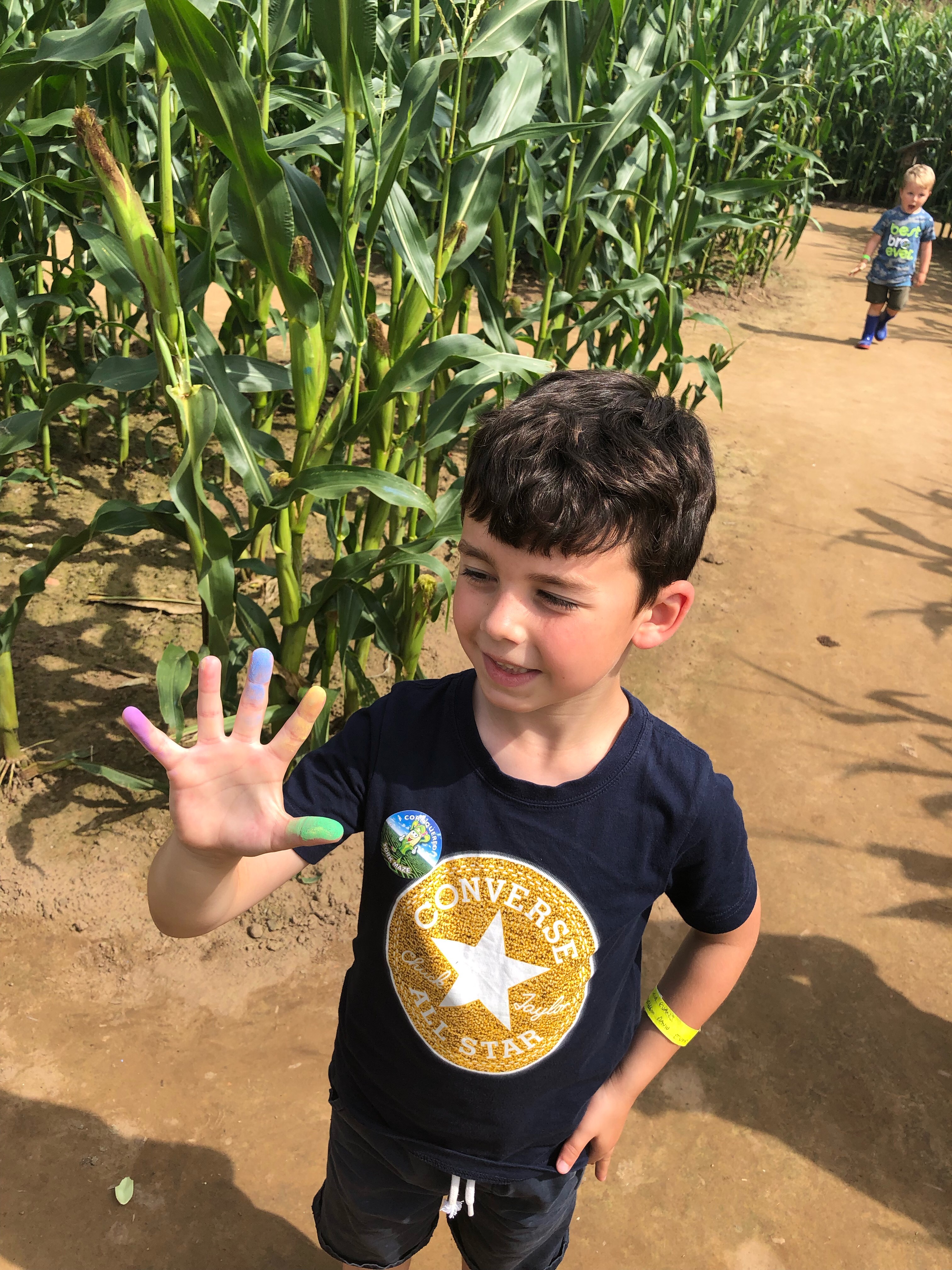 We decided to head straight to the giant maize maze first after having a photo with Kernels and sorting all three of our children out with the free ID bracelets provided when you enter.