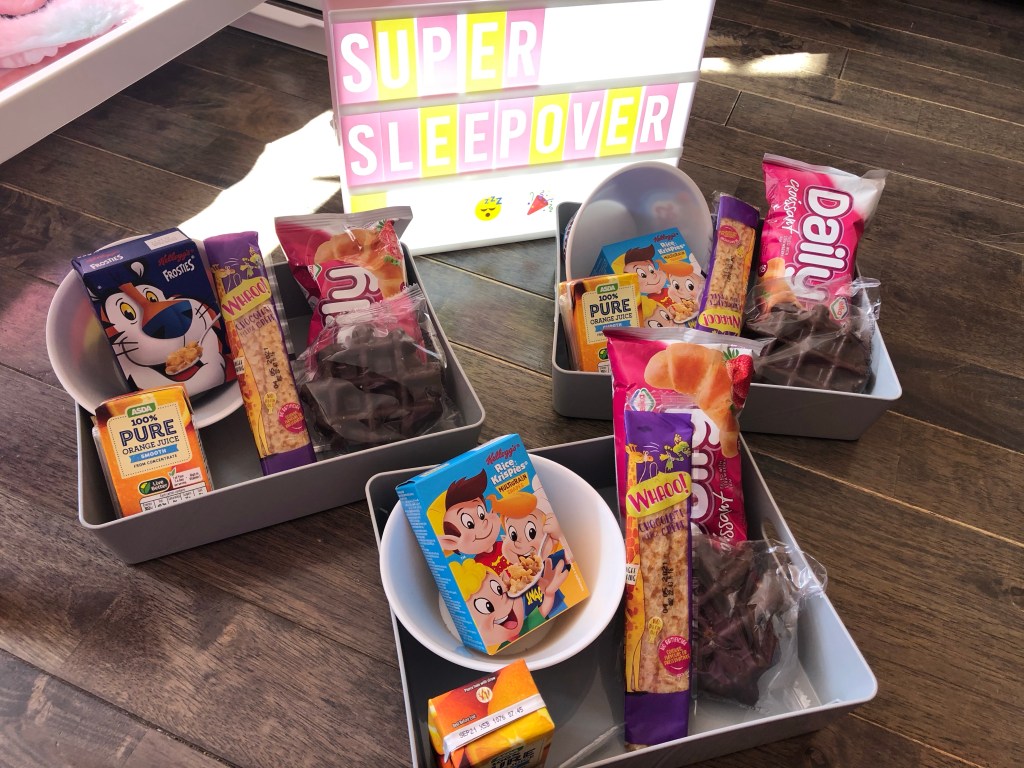 My children were also treated to a Breakfast Basket each too which is a wonderful addition and perfect for a sleepover party. These looked so cute and are jam packed with breakfast goodies.