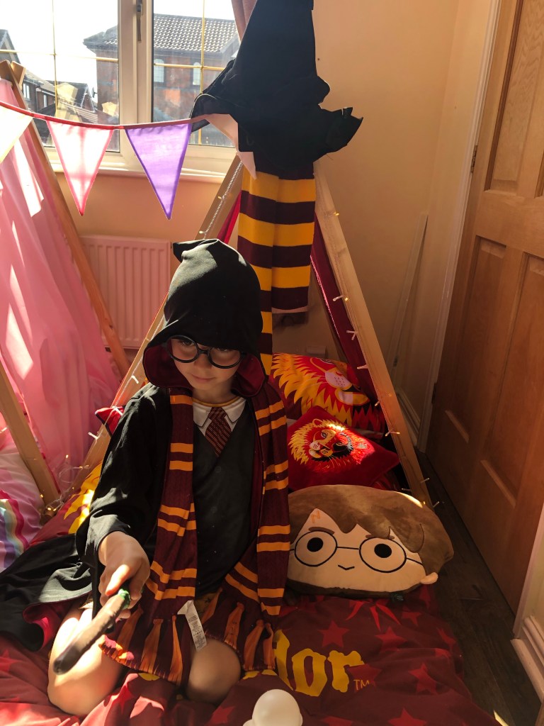 The kids have had teepee sleepovers before but the differences with Superstar Sleepovers was massive. Firstly the quality of the teepee and accessories was obvious. Everything was lovely and new, clean and in full working order. The accessories have obviously been chosen with thought and care. The Harry Potter theme even came with a newspaper clipping and some fantastic decorations.