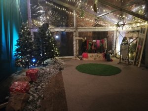 We arrived at the church which looked lovely, there was plenty of fairy lights and even little food stalls in the grounds. The interior of St Luke’s had been transformed into a Winter Wonderland. We headed into the entrance were we were soon greeted by one of Santa’s elves and Mrs Claus herself, we found ourselves in Mrs Claus’s Art Studio.